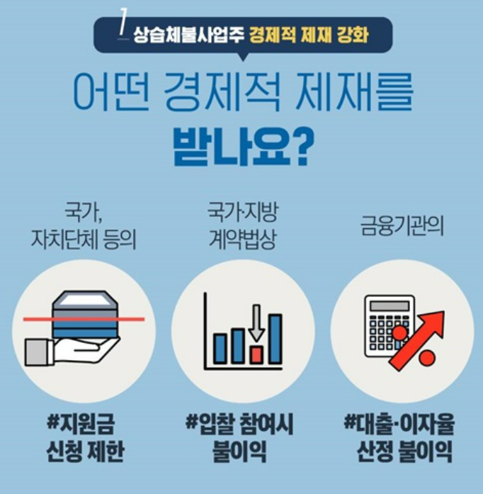 1년 안에 3개월 이상 임금을 체불했거나, 총 5회 이상 체불하고 체불 금액이 3000만 원 이상인 경우에는 상습 임금체불 사업주로 지정되어 각종 금융 불이익을 받게 됩니다. 신용정보원에 관련 정보가 제공되며, 은행 대출이나 신용카드 발급 등에서 제한이 생기고, 국가나 지자체가 제공하는 각종 보조금이나 입찰 참여도 불가능해집니다.