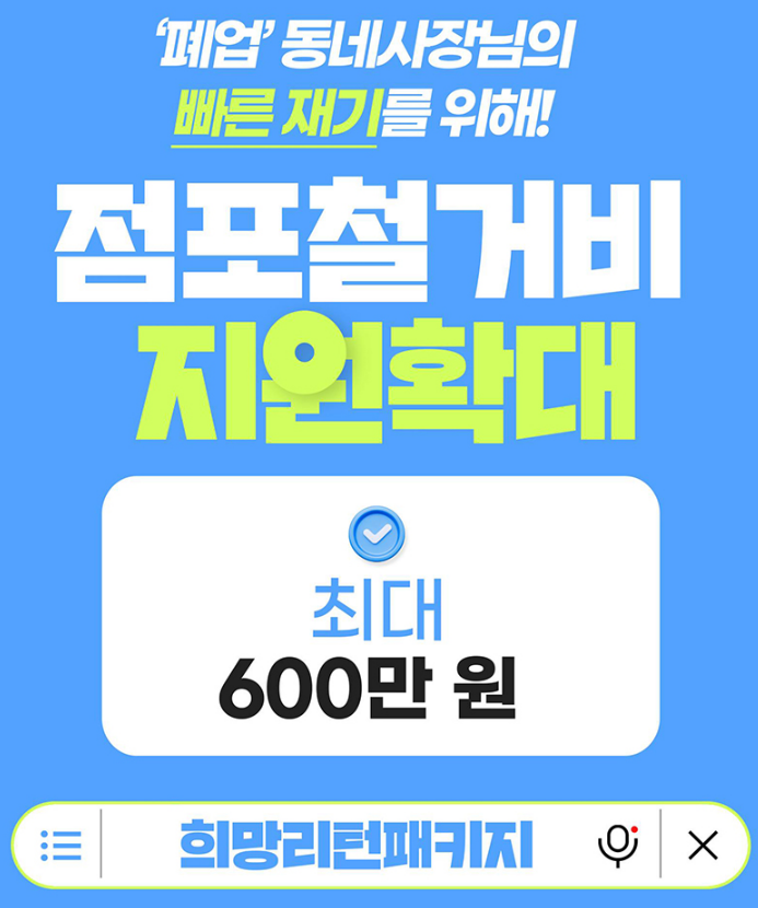 기존 400만 원이던 점포철거비 한도를 최대 600만 원까지 늘려 소상공인의 폐업 부담을 줄였습니다.