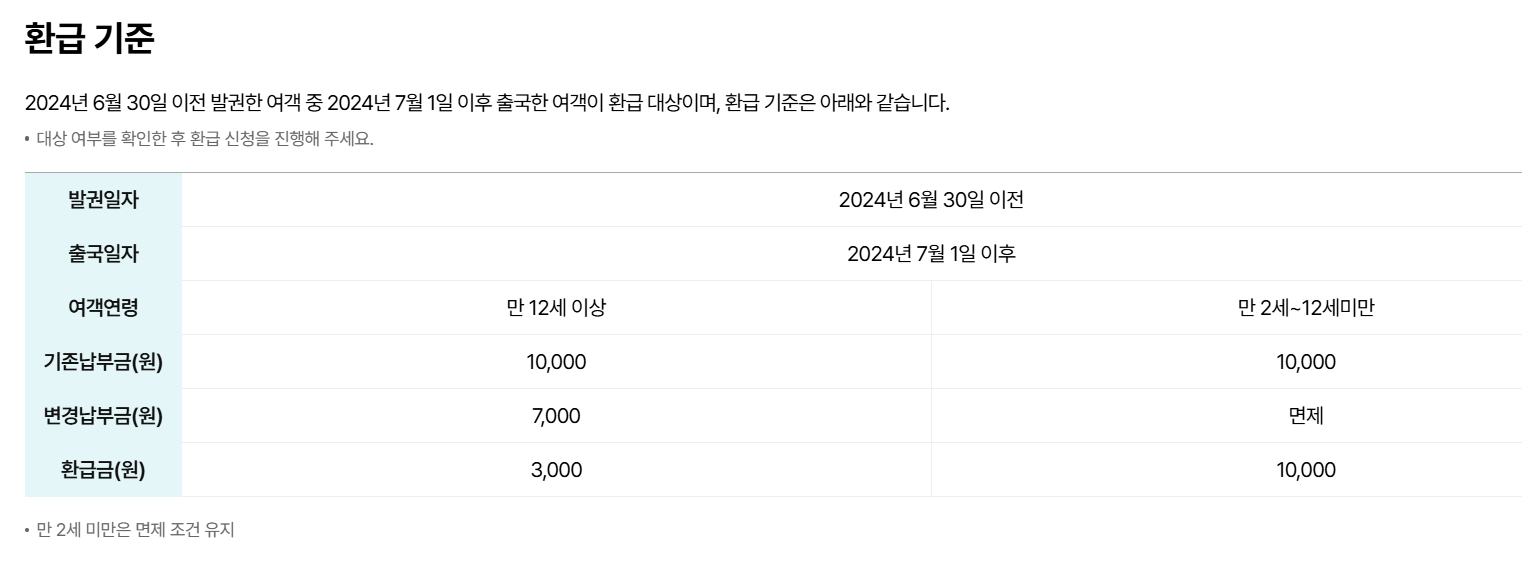 2024년 7월 1일부터는 제도 개편으로 이 요금이 인하되었고, 특히 어린이(2세 이상 12세 미만)는 출국납부금이 전액 면제 대상자로 확대되었습니다.
