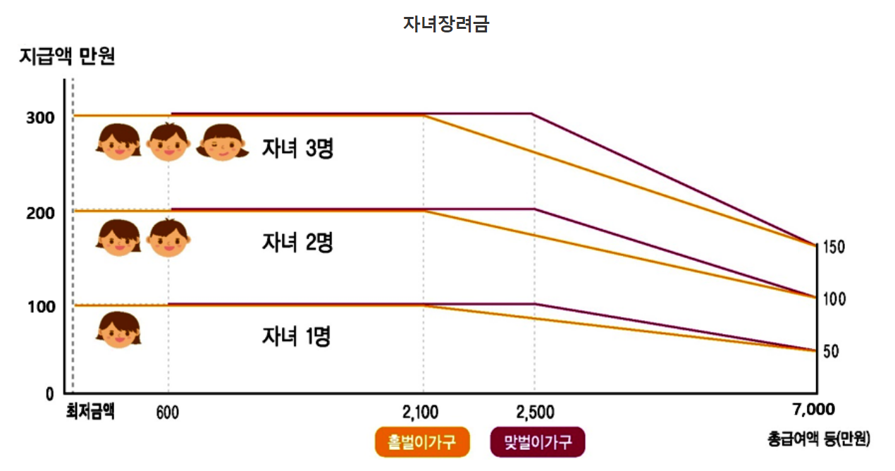 근로장려금의 소득요건과 비교하면, 자녀장려금의 경우 소득 기준이 더 완화되어 있습니다.