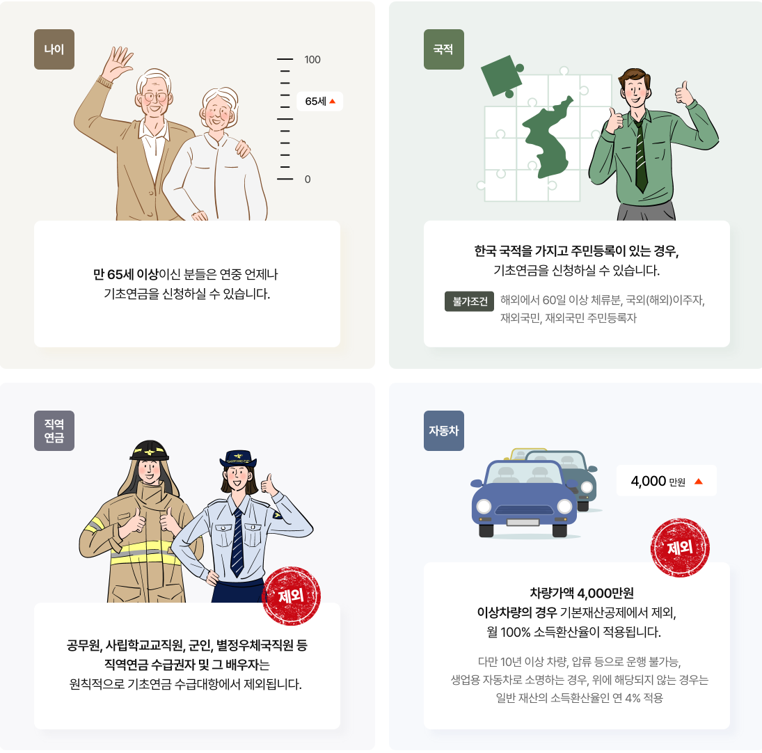 대상 기준: 만 65세 이상 대한민국 국민으로, 반드시 국내에 주민등록되어 있고 거주 중이어야 합니다.