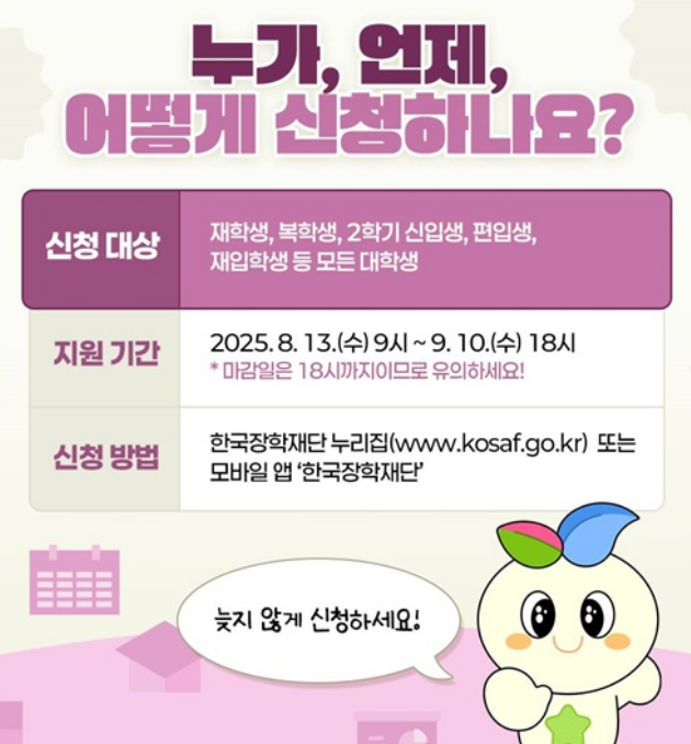 신청 절차와 유의사항을 정확히 이해하면, 학비 부담을 줄이고 안정적인 대학 생활을 이어갈 수 있습니다.
