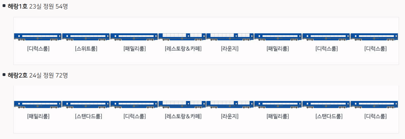 ‘레일크루즈 해랑’은 '땅 위의 유람선'이라 불리는 국내 유일 숙박형 관광열차입니다.