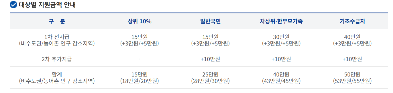 2차 민생지원금은 1차 전 국민 지급과 달리, 소득 기준을 적용한 선별 지원 방식으로 전환했습니다.